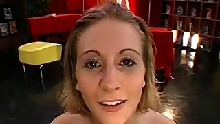 Retro bukkake porn with a blond slut in red lipstick