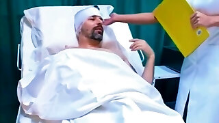 Really nasty blond nurse rides bandaged patient's cock in the hospital