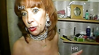 Ultra-kinky blond Anna Belle wanks in retro garter and sheer black nylons