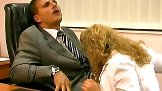 Molten blonde secretary gives head to her handsome boss